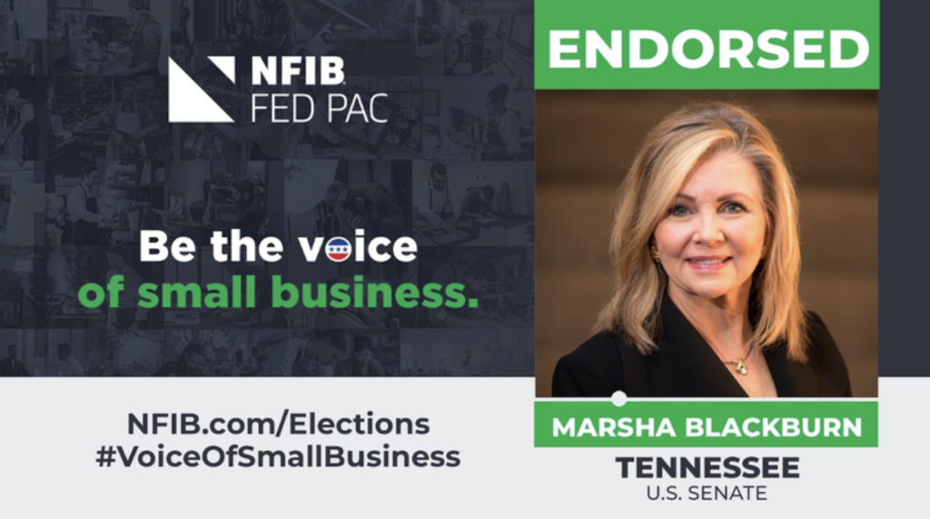 Brentwood, TN – Yesterday, the National Federation of Independent Business (NFIB), the nation’s leading small business advocacy organization, endorsed U.S. Senator Marsha Blackburn (R-TN) for re-election.
